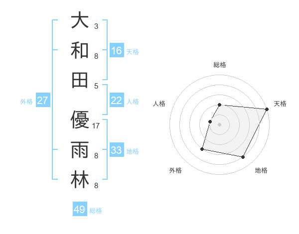 大和田 優雨林さんを姓名の画数から五運を鑑定