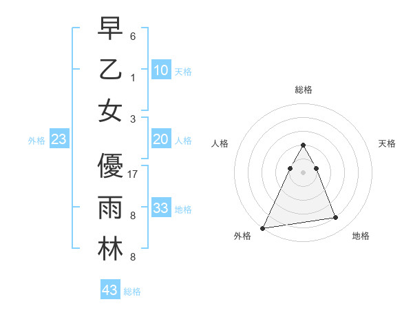 早乙女 優雨林さんを姓名の画数から五運を鑑定