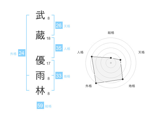 武蔵 優雨林さんを姓名の画数から五運を鑑定