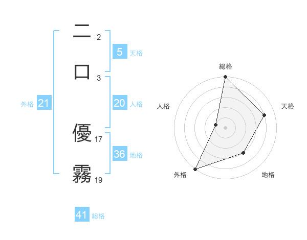 二口 優霧さんの外格は21画の5点!