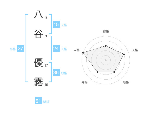 八谷 優霧さんの総格は51画の3点!