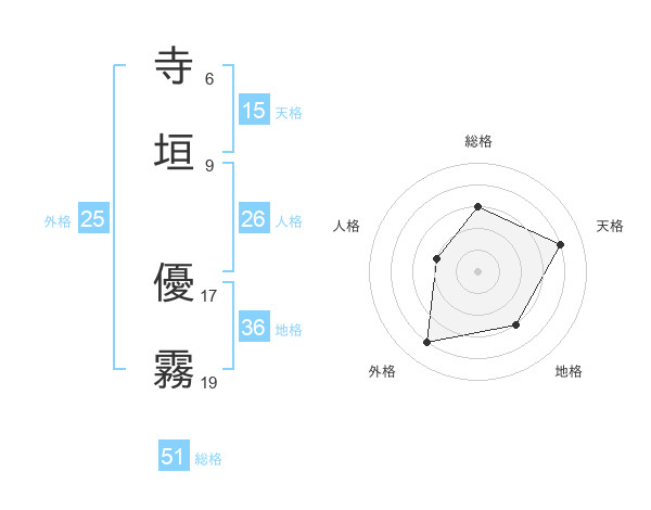 寺垣 優霧さんの総格は51画の3点!
