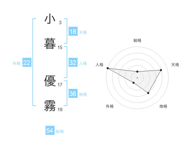 小暮 優霧さんの天格は18画の4点!