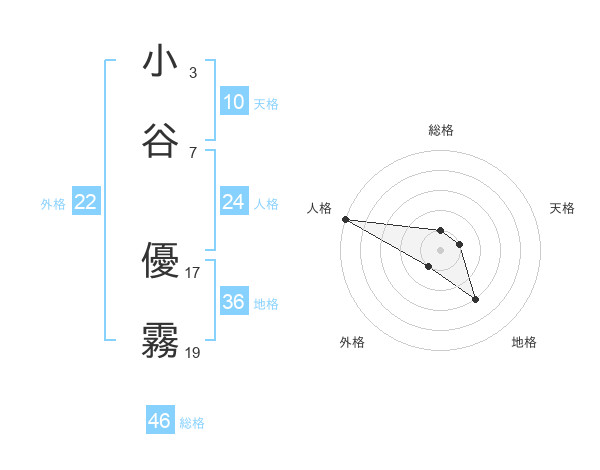 小谷 優霧さんを姓名の画数から五運を鑑定