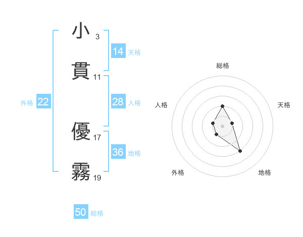 小貫 優霧さんの総格は50画の2点!