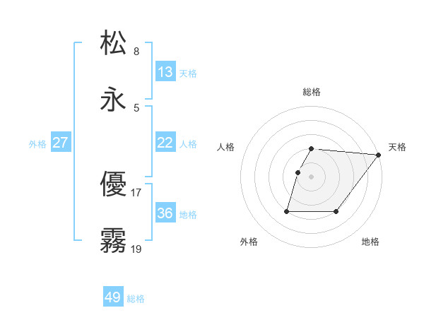 松永 優霧さんの天格は13画の5点