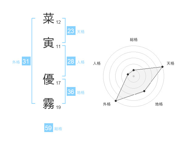 菜寅 優霧さんの外格は31画の5点!