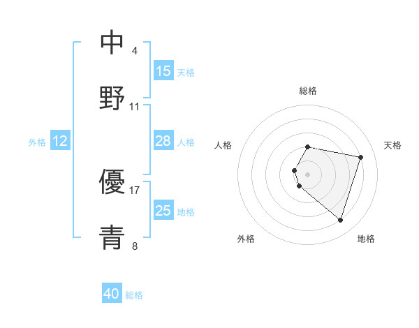中野 優青さんの総格は40画の2点!