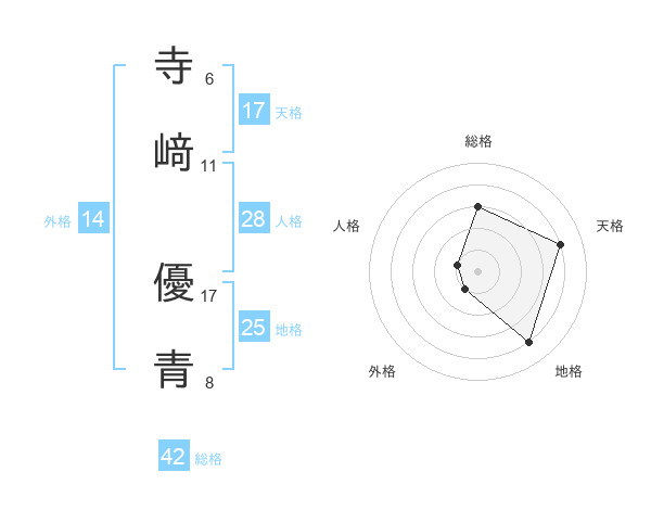 寺﨑 優青さんを姓名の画数から五運を鑑定
