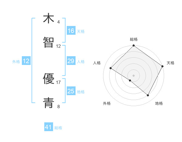木智 優青さんの総格は41画の5点!
