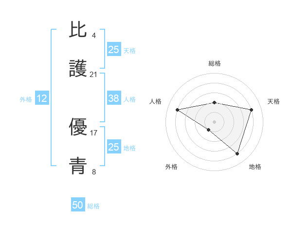 比護 優青さんの天格は25画の4点!
