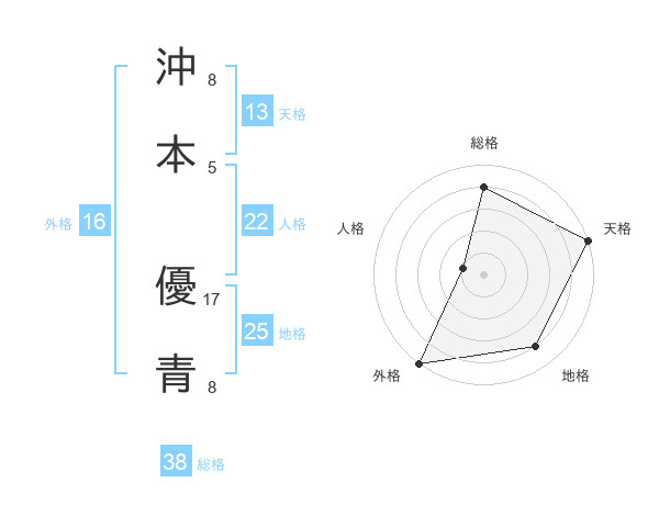 沖本 優青さんの天格は13画の5点!