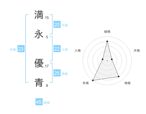 満永 優青さんの総格は45画の4点!