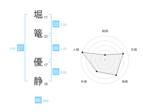 堀篭 優静さんを姓名の画数から五運を鑑定