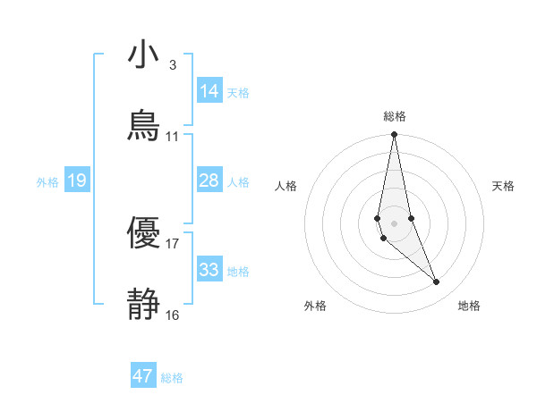 小鳥 優静さんの総格は47画の5点!