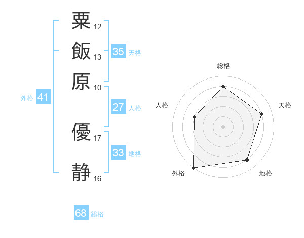 粟飯原 優静さんの外格は41画の5点!