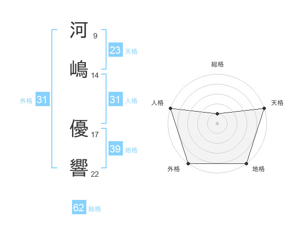 河嶋 優響さんの総格は62画の1点!