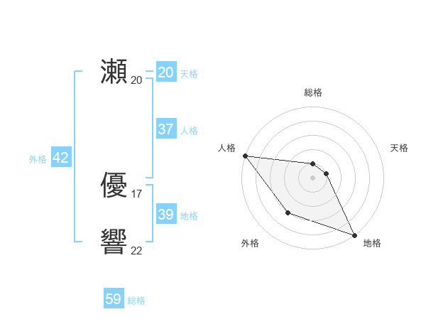 瀬 優響さんの総格は59画の1点!