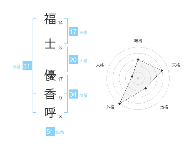福士 優香呼さんを姓名の画数から五運を鑑定