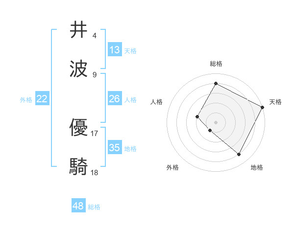 井波 優騎さんの総格は48画の4点!