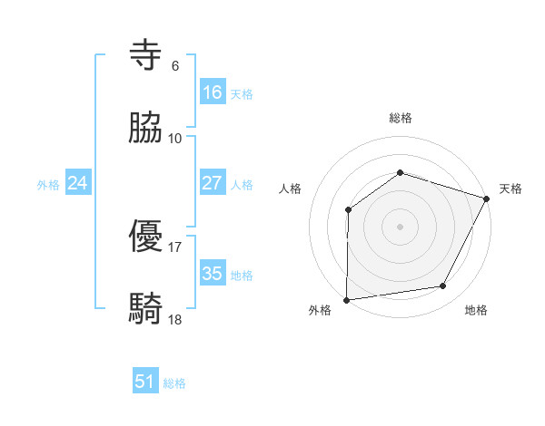 寺脇 優騎さんの外格は24画の5点!