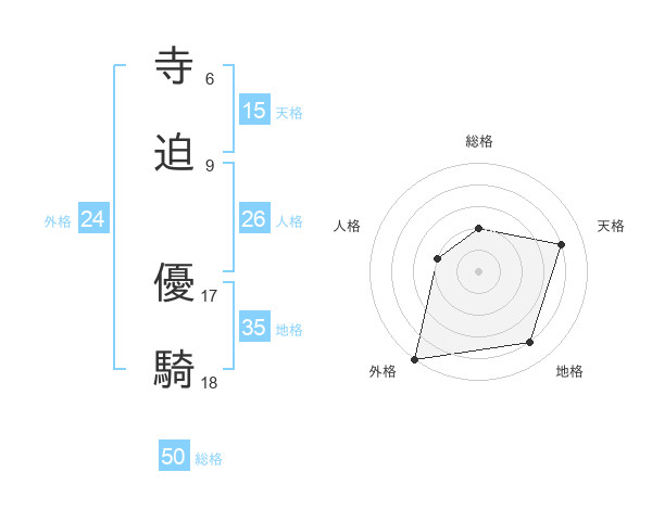 寺迫 優騎さんの天格は15画の4点!