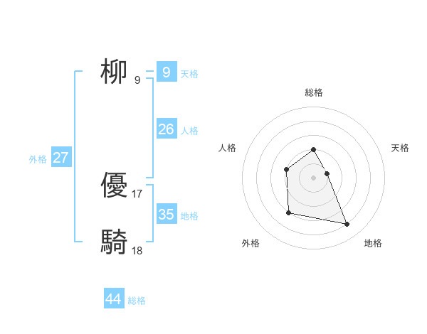 柳 優騎さんの総格は44画の2点!