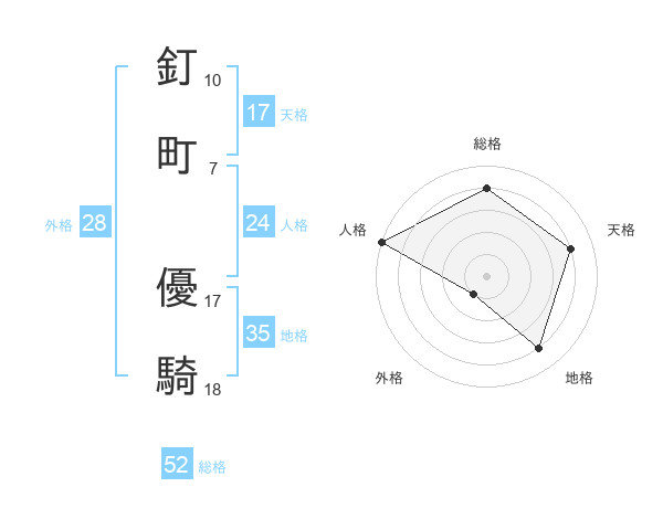 釘町 優騎さんを姓名の画数から五運を鑑定