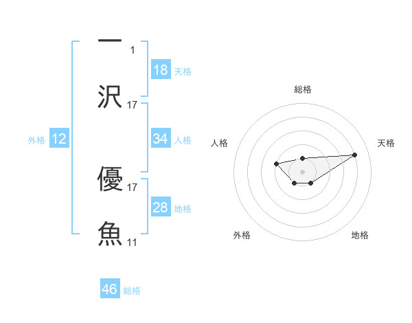 一沢 優魚さんの総格は46画の1点!