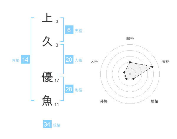 上久 優魚さんの総格は34画の2点!