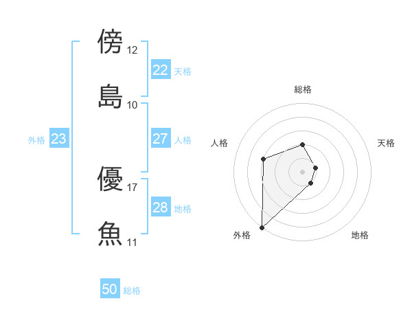 傍島 優魚さんの総格は50画の2点!