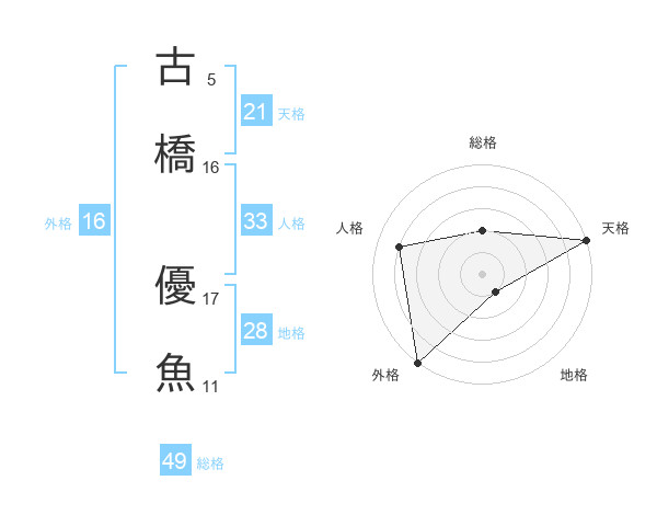 古橋 優魚さんを姓名の画数から五運を鑑定