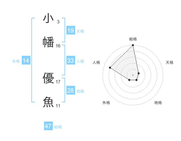 小幡 優魚さんを姓名の画数から五運を鑑定