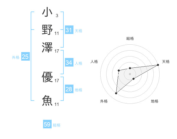 小野澤 優魚さんの総格は59画の1点
