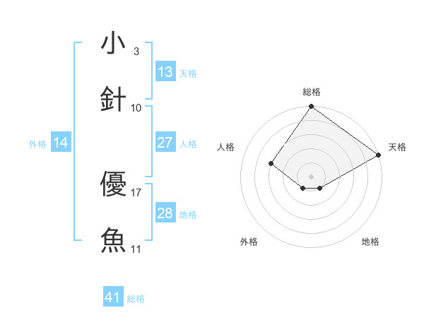 小針 優魚さんの天格は13画の5点!