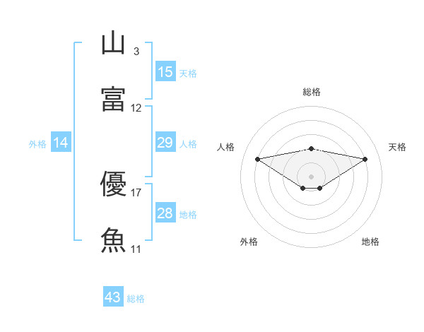 山富 優魚さんの天格は15画の4点!