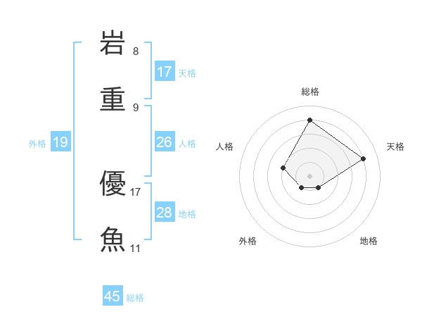 岩重 優魚さんの総格は45画の4点!