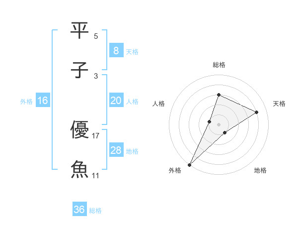 平子 優魚さんの天格は8画の4点!