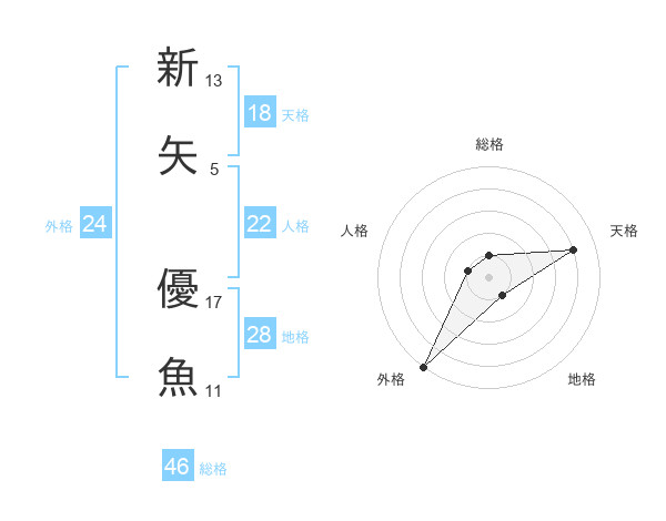 新矢 優魚さんの天格は18画の4点!