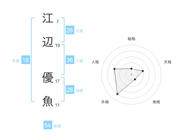 江辺 優魚さんの総格は54画の1点!