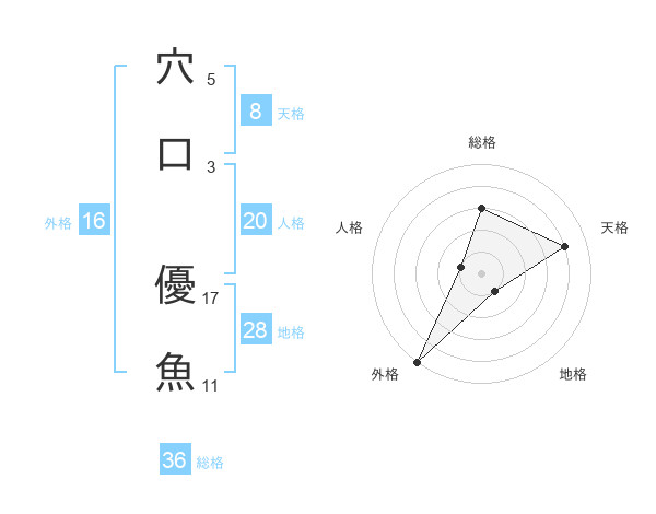 穴口 優魚さんの天格は8画の4点!