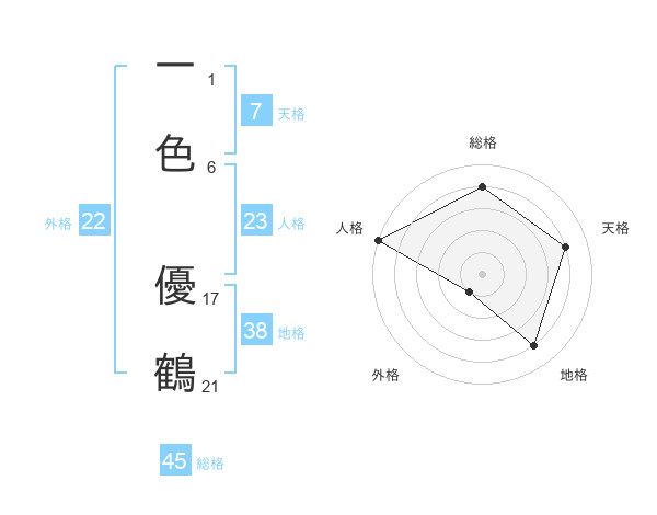 一色 優鶴さんの総格は45画の4点