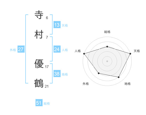 寺村 優鶴さんの総格は51画の3点!