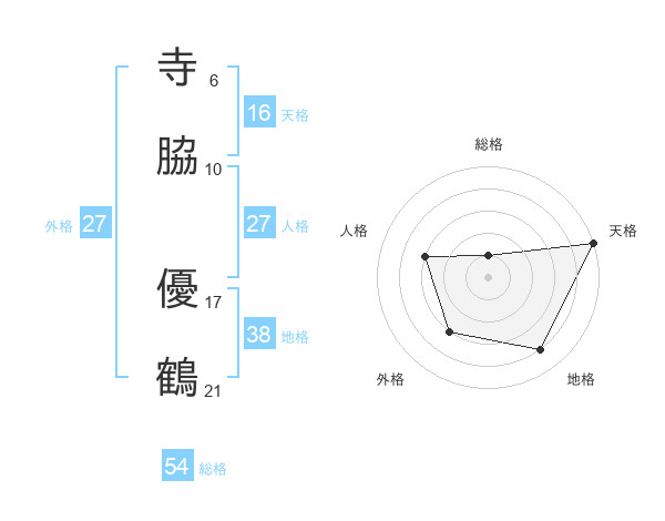 寺脇 優鶴さんを姓名の画数から五運を鑑定
