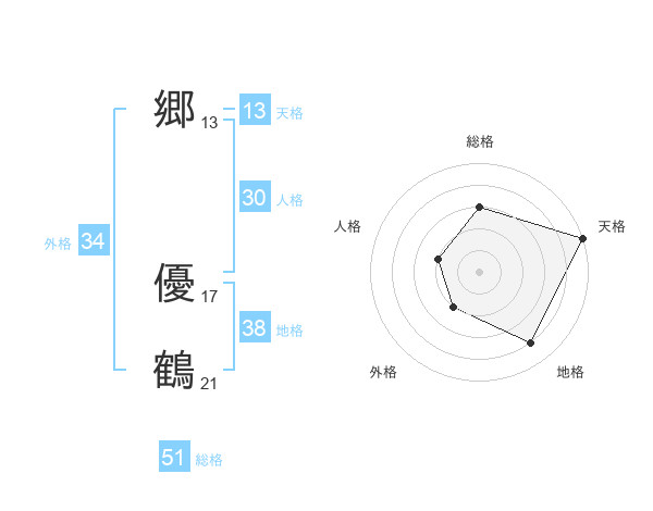 郷 優鶴さんの総格は51画の3点!