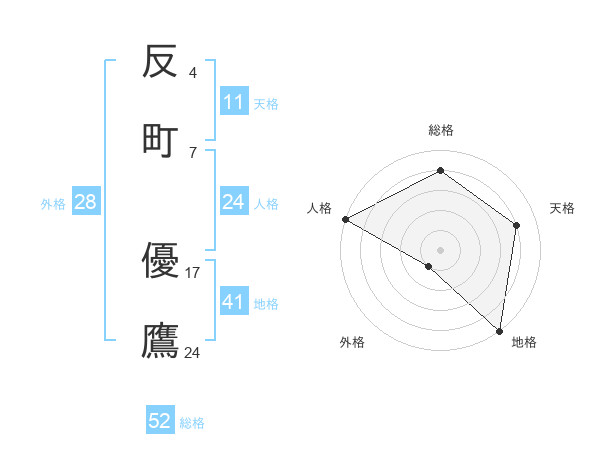 反町 優鷹さんを姓名の画数から五運を鑑定