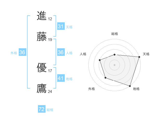 進藤 優鷹さんを姓名の画数から五運を鑑定