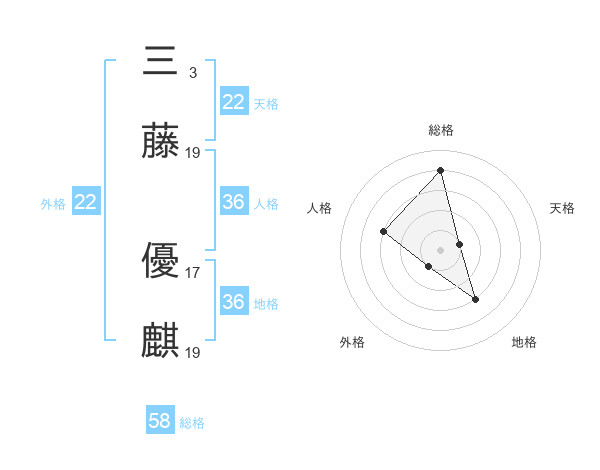 三藤 優麒さんの総格は58画の4点!