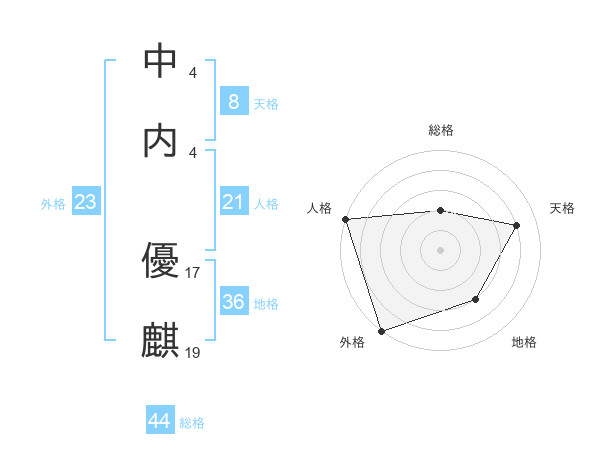 中内 優麒さんの天格は8画の4点!