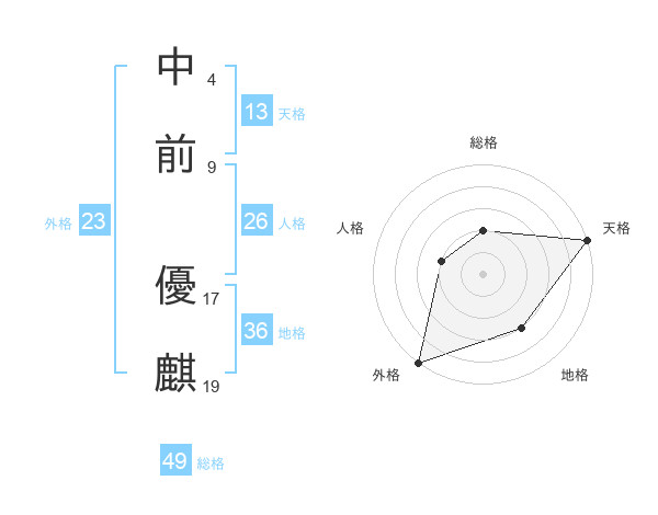 中前 優麒さんの天格は13画の5点!
